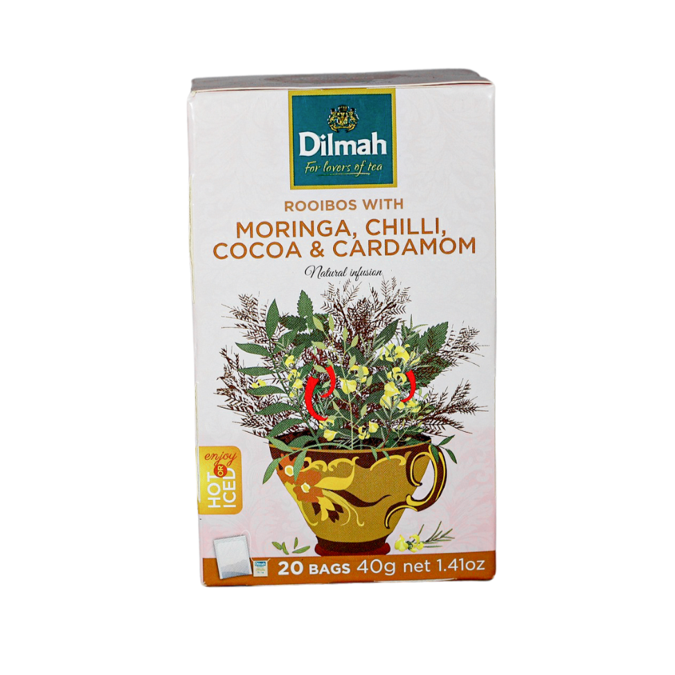 Treat yourself to the decadent blend of caramel, ginger, and coconut with Dilmah Rooibos with Caramel, Ginger & Coconut Tea—a perfect way to unwind and indulge.